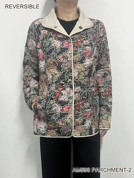 Stay stylish and cozy with the Reversible Floral Quilted Jacket by Creation. This versatile jacket offers two looks in one, featuring a charming floral pattern on one side and a sleek, quilted design on the other. Perfect for changing seasons, it provides warmth without bulk, making it your go-to layering piece. Elevate your wardrobe with effortless style and comfort.