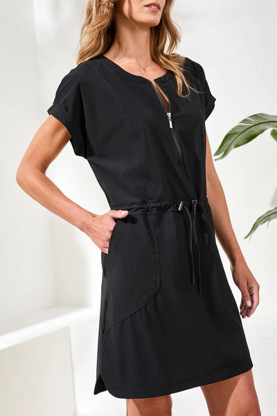 Designed for movement and all-day ease, this zip-front dress features a flattering drawcord waist and subtle stretch. Sporty details meet soft structure, making it a standout for both tennis courts and busy days.
