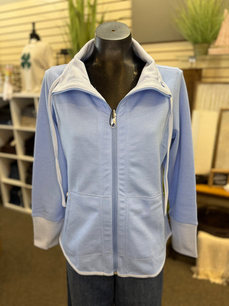 Lulu B Reversible Bucket Neck Zip Front Striped Jacket - Periwinkle