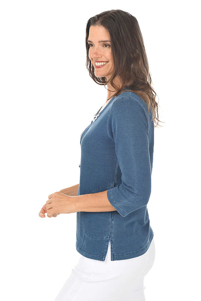 Wild Palms Cotton French Terry Lace-Up V-Neck Knit Top Effortless style meets comfort in this versatile knit top. Crafted from soft cotton French terry, it features a flattering V-neckline and adjustable lace-up front detail for a customizable fit. Perfect for layering or wearing solo, this piece transitions seamlessly from casual days to relaxed evenings. The breathable fabric keeps you comfortable all day long.